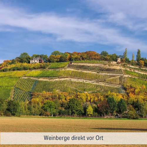 Sie wohnen direkt im Weindorf Roßbach an der Saale, wo Sie die zahlreichen Winzer mit ihren Straußenwirtschaften zum Genießen und Verweilen einladen.